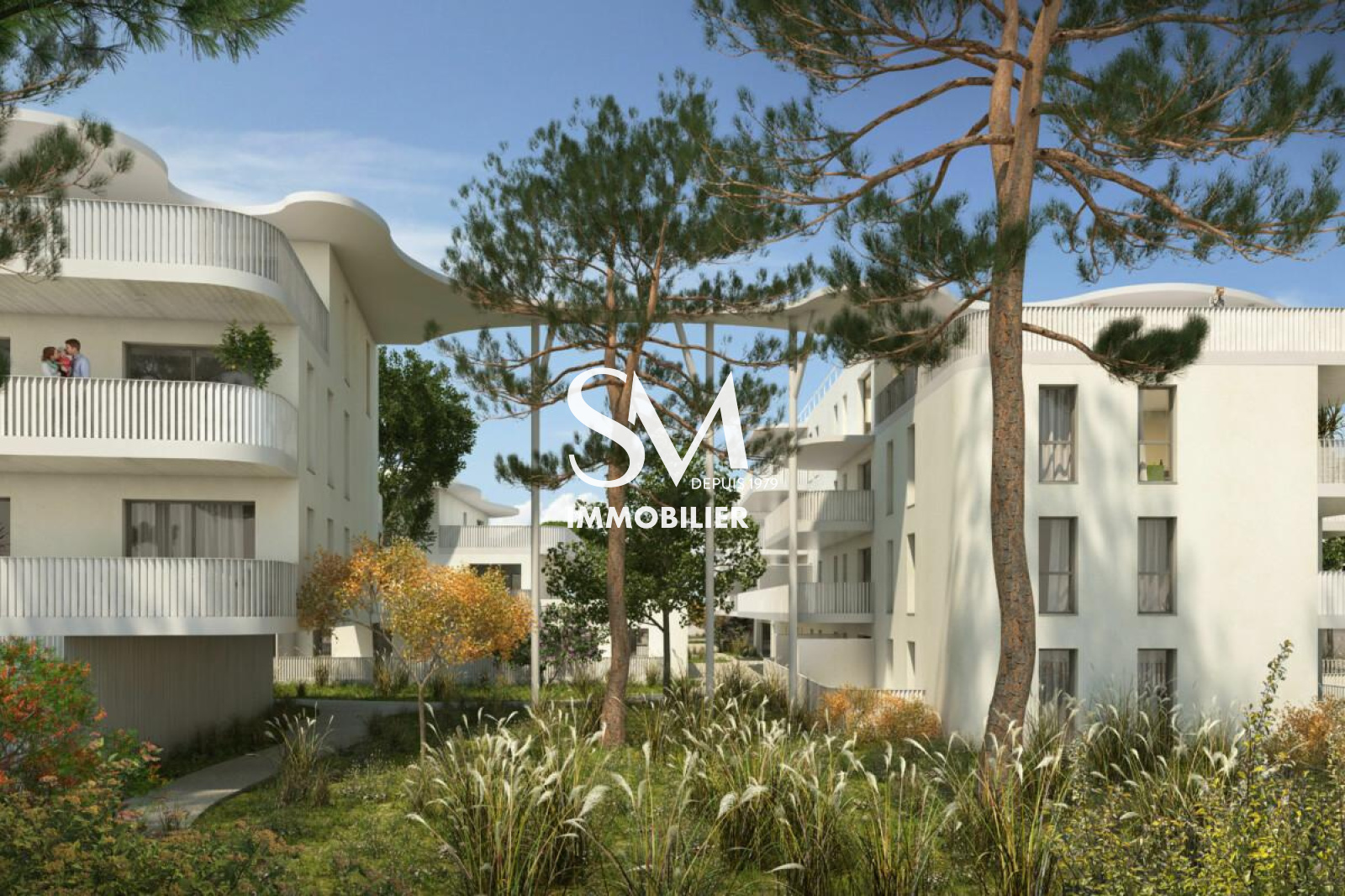 Résidence de 102 appartements T2 à T5, terrasses privatives, parkings sécurisés. Bâtiments mettant en valeur le végétal, balcons et terrasses XXL préservant votre intimité. SM & Bella Míla offrent des prestations de standing inégalées avec vue sur le parc arboré.