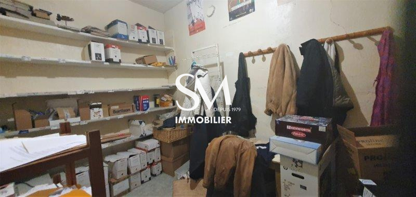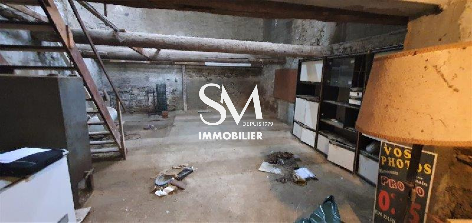 Au rez de chaussée un salon de 40m². - une réserve de 20 m² - un bureau et une ancienne surface commerciale de 36 m² (ancien Tabac Presse) - un garage de 72 m² avec mezzanine de 55 m² -